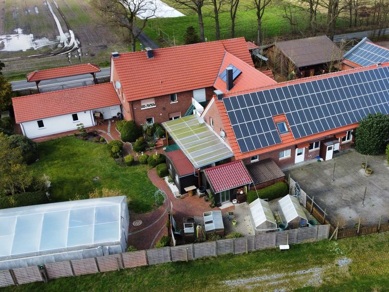 Das Baujahr der Immobilie ist ca. 1950. Weitere Um- und Anbauten haben 2011-2015 stattgefunden. Auf über 500 m² finden Sie ausreichend Platz zum Wohnen, Arbeiten und andere Nutzungsmöglichkeiten. Sozialräume, Abstellräume und mögliche Ausbaureserven sind ebenso vorhanden, wie weitere Nebengebäude, die als Scheune, Lagerraum, Pferdestall o. ä. dienen können. Eine großzügige Mehrfachgarage bietet viel Platz für den Fuhrpark. Auf einem Großteil der Dächer auf den Wirtschaftsgebäuden befindet sich eine Photovoltaikanlage mit einer Leistung von ca. 29,785 KWp. Der Einspeisevertrag läuft noch bis zum 31.12.2031. Der Einspeisevertrag der Photovoltaikanlage auf dem Wohnhaus mit ca. 10,5 KWp läuft noch bis zum 31.12.2033. Umrahmt ist die gesamte Hofstelle und Plantage mit einem Zaun, die Hofzufahrten sind mit großen Torbögen und elektrischen Toranlagen (teilweise) abgeschlossen.
