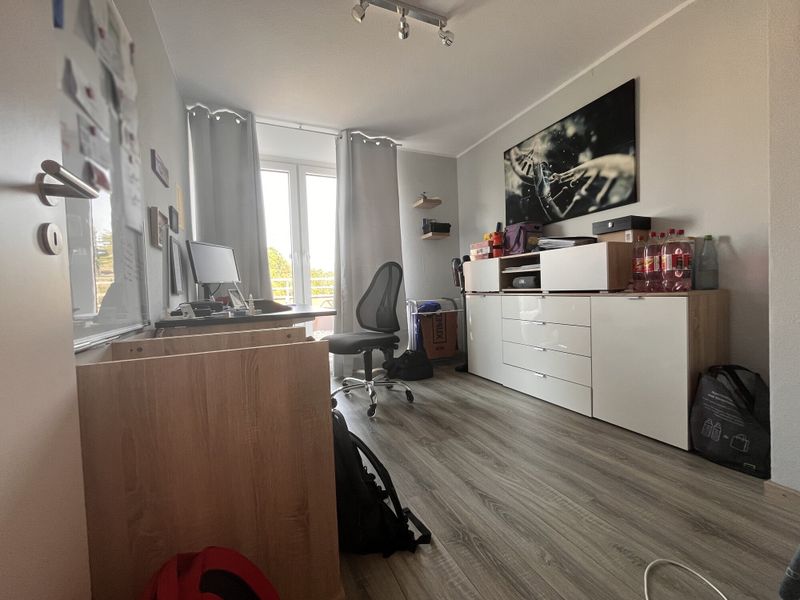 Ein Highlight der Wohnung ist das helle, großzügig geschnitten Wohn-/Esszimmer mit direktem Zugang zum geräumigen Balkon, der zudem vom Schlafzimmer und Kinderzimmer zugänglich ist. Ferner befindet sich im Wohn-/Esszimmer ein Specksteinofen mit außenliegendem Edelstahlkaminabzug.