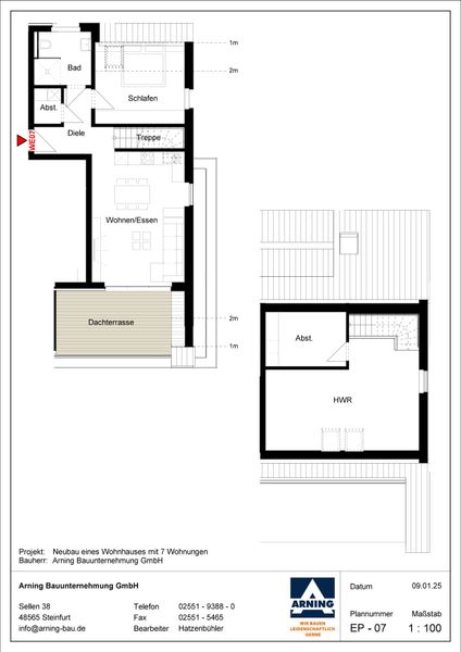 In Wohnung Nr. 7 – Maisonettewohnung – des Neubauvorhabens erwartet Sie folgende Aufteilung: