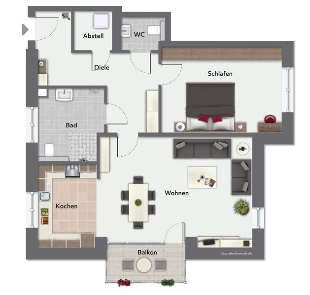 Für zusätzlichen Stauraum stehen sowohl ein Abstellraum als auch ein Kellerraum zur Verfügung.
