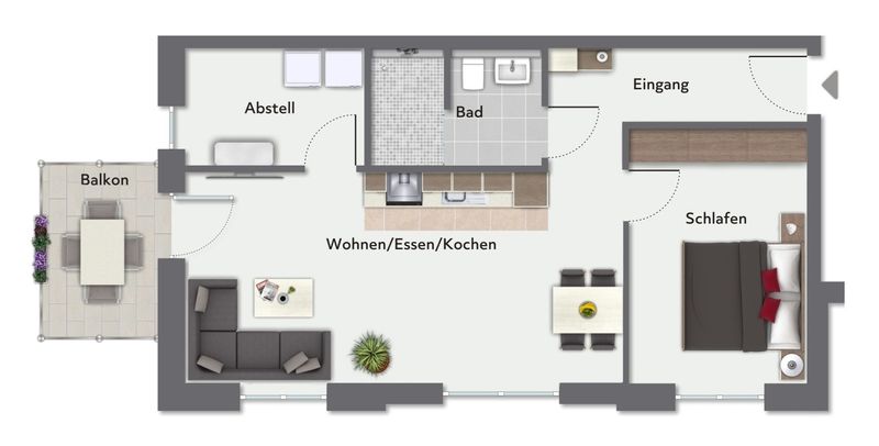 Die Wohnungsgrößen variieren zwischen 54 und 89 Quadratmetern und bieten mit zwei oder drei Zimmern flexible Möglichkeiten für Singles, Paare und kleine Familien. Die Grundrisse sind geprägt von offenen Wohnküchen, die das Herzstück jeder Wohnung bilden und zu geselligen Stunden einladen. Großzügige Terrassen und Balkone erweitern den Wohnraum ins Freie und schaffen Orte der Entspannung mit herrlichem Ausblick auf die grüne Umgebung.
