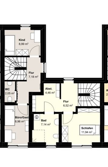 Räume, Flure und Etagen