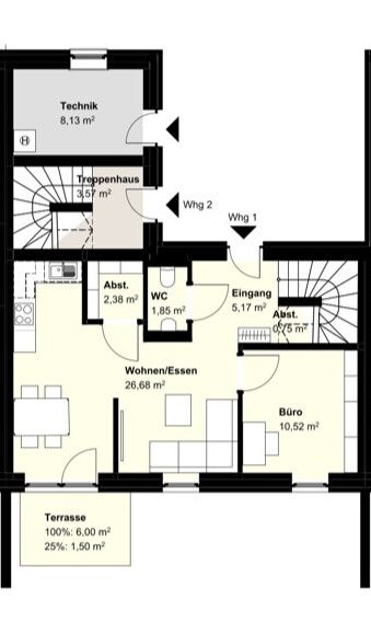 In Wohnung 1 des Reihenmittelhauses erwartet Sie folgende Raumaufteilung: