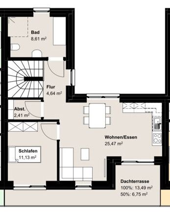 Die großzügig geschnittene 4-Zimmer-Wohnung bietet eine Wohnfläche von ca. 90 m². Sie beinhaltet eine einladende Dachterrasse. Die Wohnung überzeugt durch eine offene Bauweise und modernem Bad mit ebenerdiger Dusche. Die Anschlüsse für Waschmaschine und Trockner befinden sich im Abstellraum.