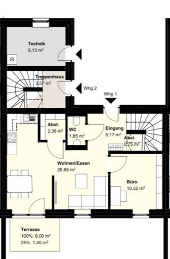 In Wohnung 2 des Reihenmittelhauses erwartet Sie folgende Raumaufteilung: