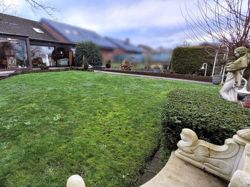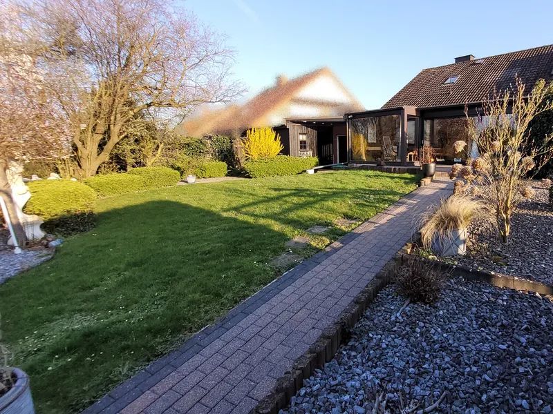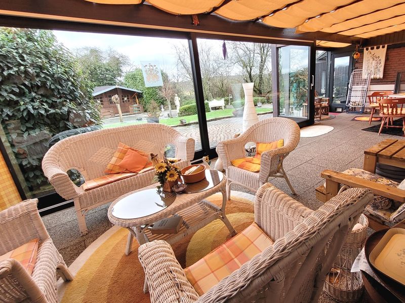 Ein echtes Highlight ist der lichtdurchflutete Wintergarten, der sowohl im Sommer als auch im Winter einen Rückzugsort bietet. Der pflegeleichte Garten mit Gartenhaus ist das perfekte Paradies für Hobbygärtner und begeistert mit seiner Vielfalt. Zudem verfügt das Haus über eine großzügige Garage.