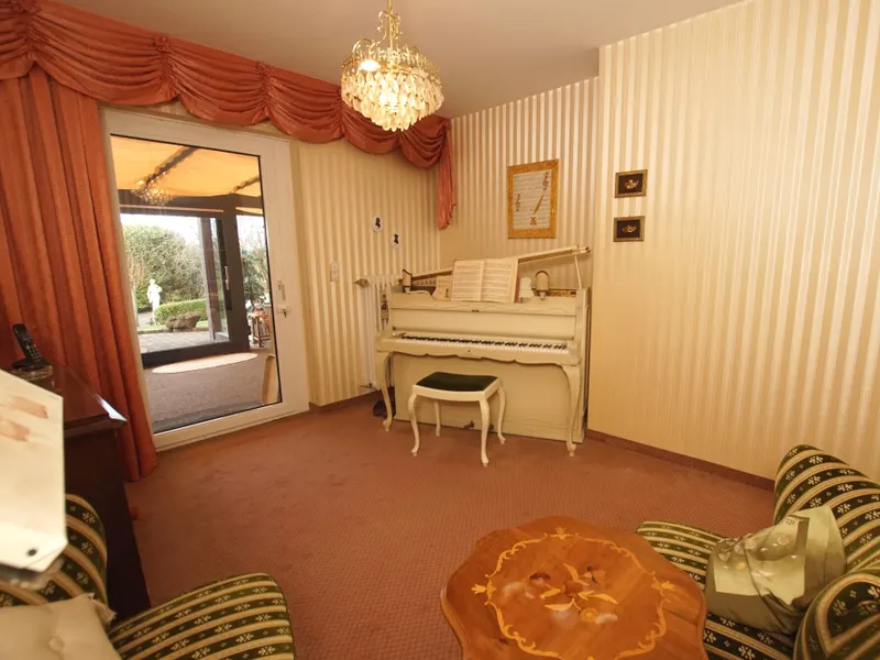 Ebenso befinden sich auf dieser Etage ein Schlafzimmer und das Arbeits-/Besucherzimmer, aus welche man einen beruhigenden Blick in den schönen Garten hat.