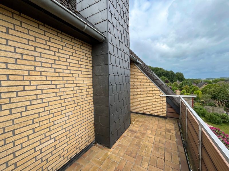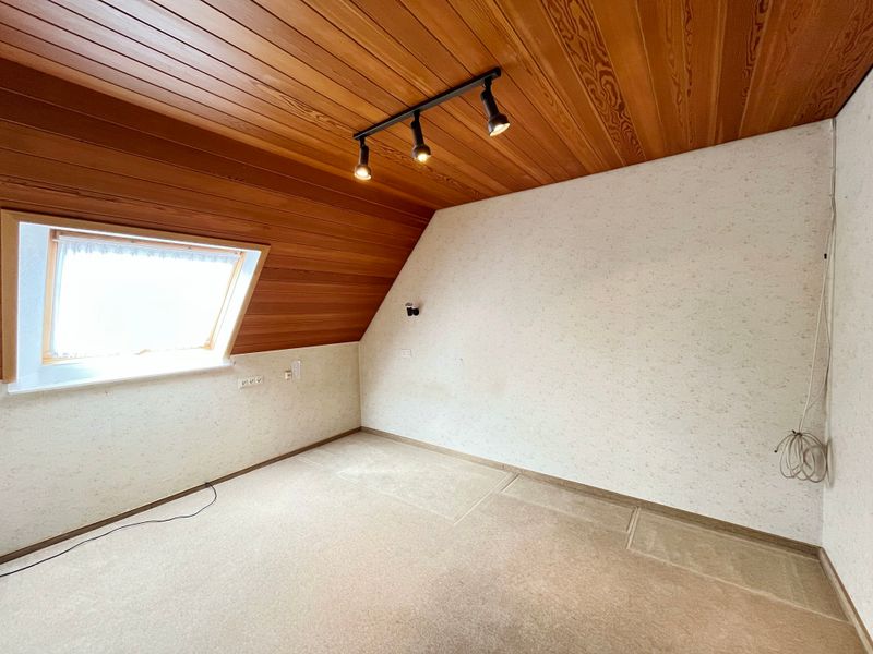 Weiter im Dachgeschoss befinden sich zwei gemütliche Schlafzimmer, jeweils mit Zugang zum Balkon über einen separaten Flur, sowie ein drittes Schlafzimmer. Zwei Bäder – eines mit Dusche, eines mit Badewanne – sowie ein separates WC mit Waschbecken bieten hohen Komfort und runden das Raumangebot auf dieser Etage ab.