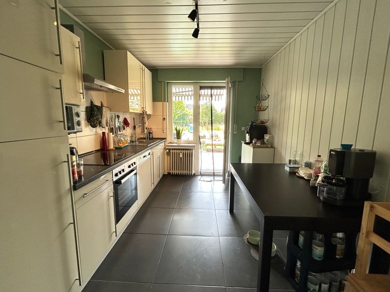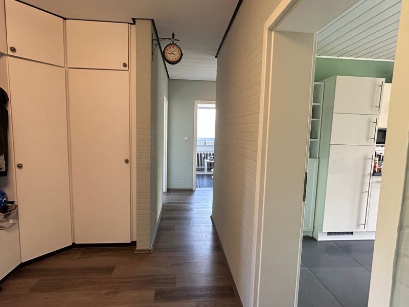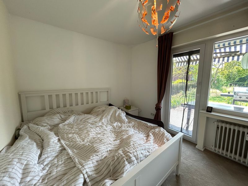 Das Erdgeschoss mit einer Fläche von ca. 104 m² umfasst drei Schlafzimmer, ein geräumiges Wohnzimmer, eine separate Küche, ein modernes Bad (erneuert in 2011), sowie ein Gäste-WC und einen Abstellraum. Von hier aus haben Sie direkten Zugang zur Terrasse und zum Süd-West Garten.