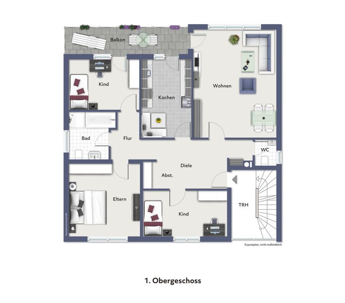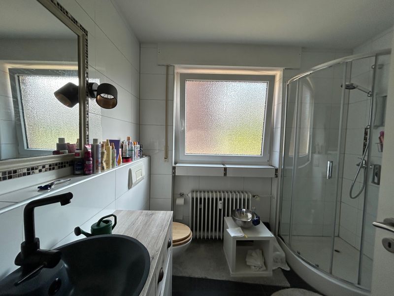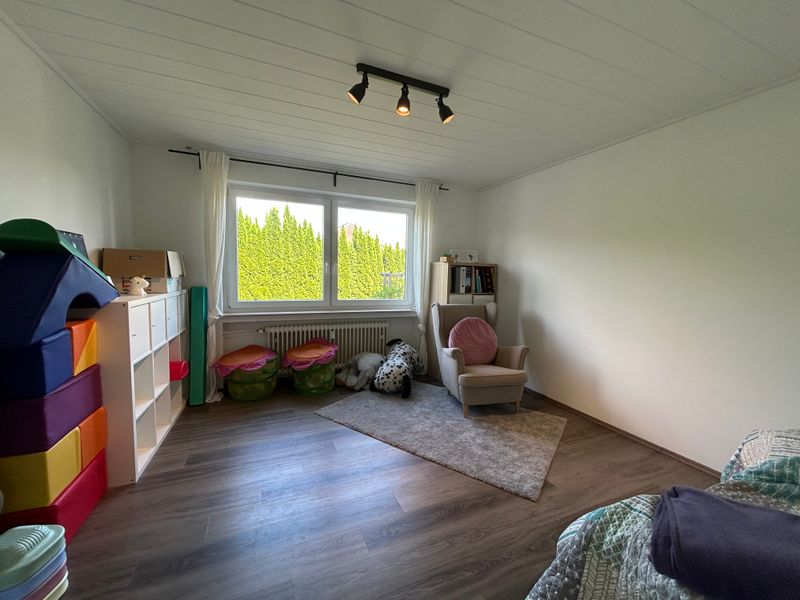 Im Obergeschoss finden Sie ebenfalls auf ca. 104 m² eine identische Aufteilung wie im Erdgeschoss mit Zugang zu einem gemütlichen Balkon. Das Bad wurde 2007 komplett erneuert. Auch hier sorgt ein Gäste-WC aus dem Baujahr für zusätzlichen Komfort.
