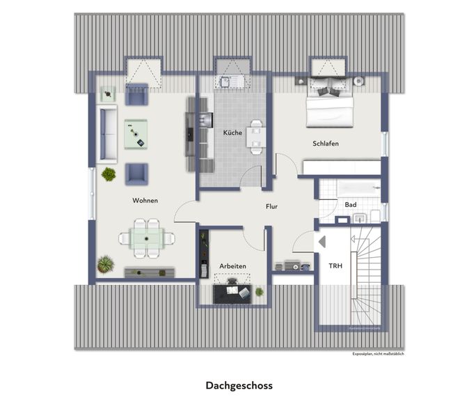 Das Dachgeschoss wurde im Jahr 2008 komplett ausgebaut und bietet auf ca. 76 m² zwei Schlafzimmer, ein Wohnzimmer, eine Küche und ein Bad. Sowohl das Bad als auch das Gäste-WC wurden 2007 saniert.
