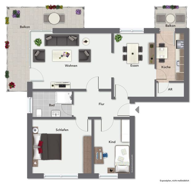 – Großzügiger Balkon am Wohnzimmer (Süd-Ausrichtung) + kleiner Balkon an Küche (Süd-West-Ausrichtung)