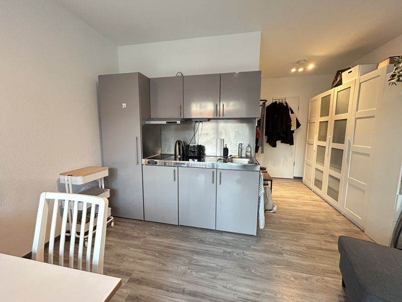 Die Wohnung besteht aus einem hellen und geräumigen Zimmer, welches als Wohn- Ess- und Schlafbereich dient. Darüber hinaus gibt es eine Küchenzeile für die Zubereitung der täglichen Mahlzeiten. Das angrenzende Bad ist mit einer Dusche ausgestattet.