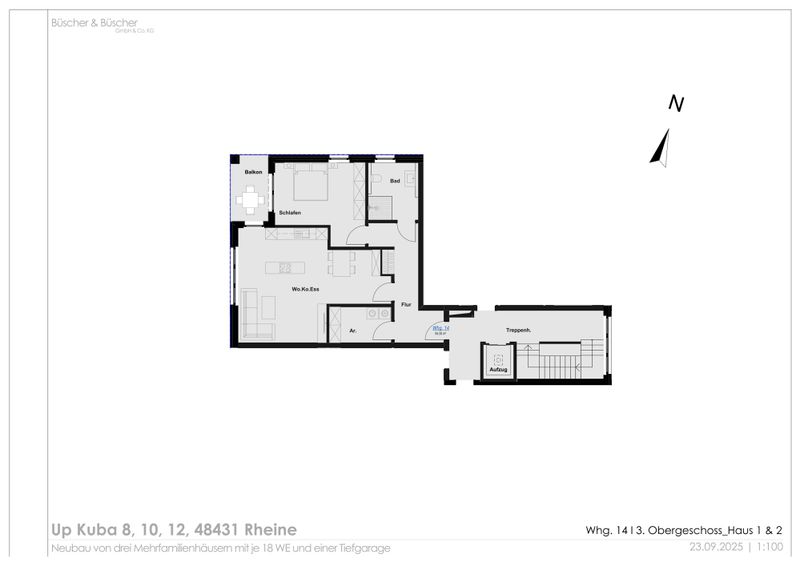 Dreimal 18 Wohneinheiten mit Grundrissflächen von ca. 63 bis ca. 122 m² bieten viel Raum zur individuellen Gestaltung. Über die gesamte Bauphase steht Ihnen das Team von Büscher & Büscher gerne zur Seite. Neben der Vergabe an erfahrene und untereinander eingespielte Gewerke, führt Sie das Team durch die Bauphasen, sodass Sie stets zur rechten Zeit Ihre Individualisierungs-Optionen aussuchen können. Beispielsweise Bodenbeläge, Innentüren, Sanitärbereich oder Elektroplanung in den Wohnungen.