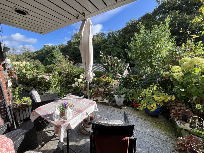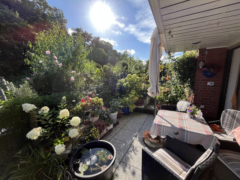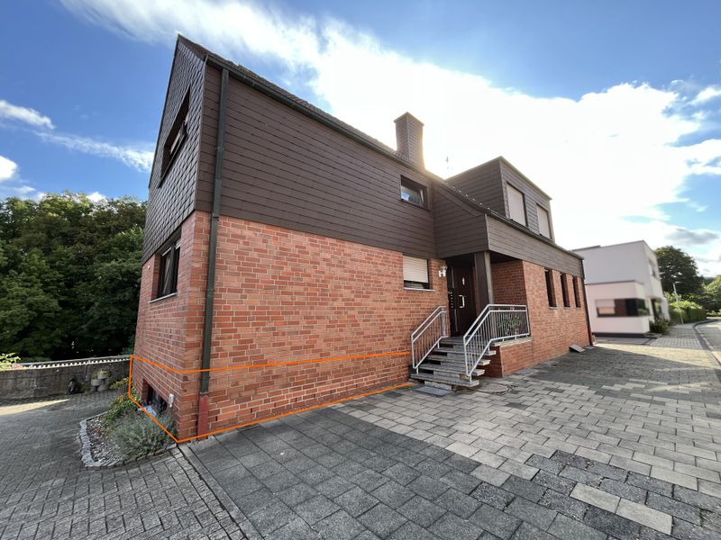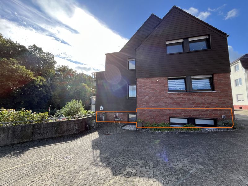 Ein Tageslicht-Badezimmer mit Dusche und Badewanne ist ebenfalls vorhanden. Die durchdachte Raumaufteilung bietet sowohl Komfort als auch Funktionalität. Das Grundstück erstreckt sich über ca. 471 m², wobei die Souterrain-Lage zusätzliche Ruhe und Privatsphäre bietet.