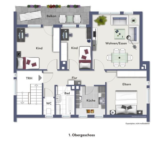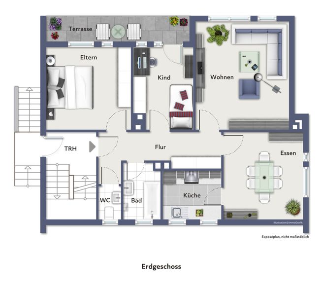 Die Raumaufteilung ist durchdacht und funktional. Im Erdgeschoss befindet sich eine Wohnung mit direktem Zugang zur Terrasse und einem gepflegten Garten, der zum Entspannen einlädt. Die Obergeschosswohnung bietet einen Balkon, der einen schönen Ausblick in die Umgebung ermöglicht. Beide Wohnungen sind über ein gemeinsames Treppenhaus erreichbar, was eine klare Trennung der Einheiten gewährleistet.