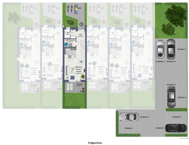 – Ein eigener PKW-Stellplatz im Freien je Einheit