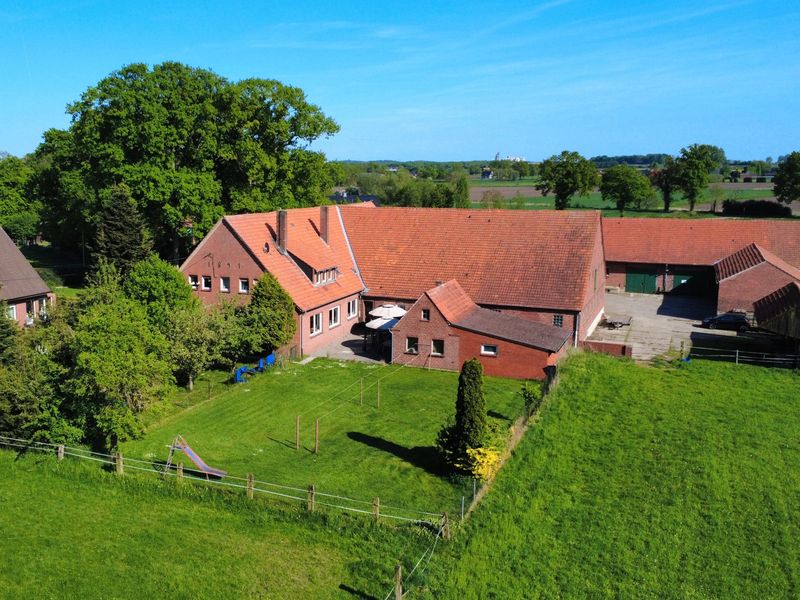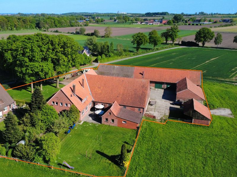 Entdecken Sie ein außergewöhnliches Immobilienangebot in der schönen münsterländischen Parklandschaft. In der Gemeinde Neuenkirchen befindet sich diese charmante, sehr solide Hofstelle mit zwei sehr großzügigen Wohnhäusern, Stallungen, Remisen und Nebengebäuden. Die Anlage setzt sich aus einem Wohnhaus im Altbau und einem durchdacht gestalteten Neubau zusammen. Beide Gebäude sind derzeit vermietet. Angeboten wird diese Hofstelle ausschließlich ohne Ackerland!
