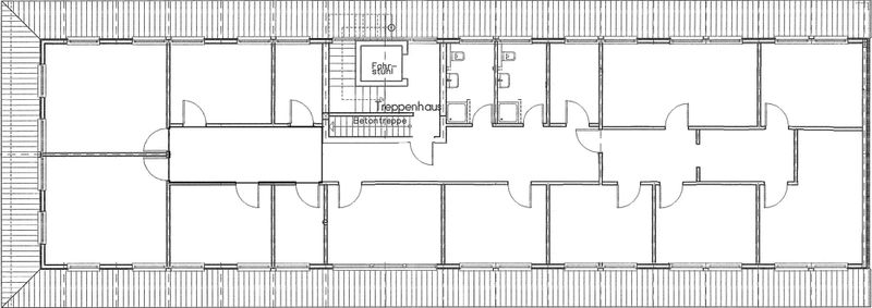 Die Aufteilung ist gut durchdacht, funktional und auf Büro- und Praxisnutzungen abgestimmt. Somit erwarten Sie elf Büros mit einer Größe von 20m²/Büro, ein Serverraum, zwei getrennte WC-Anlagen, eine Küche mit Küchenzeile und ein Archivraum.