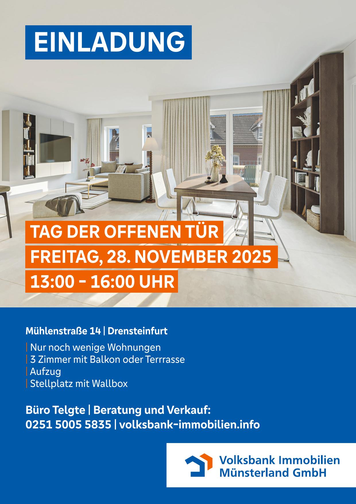 DachgeschossAttraktive Wohnung mit Wow-Effekt und Blick auf den historischen Ortskern48317 Drensteinfurt–Drensteinfurtca. 119,2 m² Wohnfläche3 Zimmer2025 Baujahr536.000 €Kaufpreis
